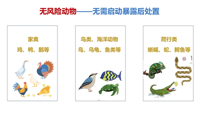 狂犬病传播无风险动物:所有哺乳动物以外的动物不传播狂犬病。