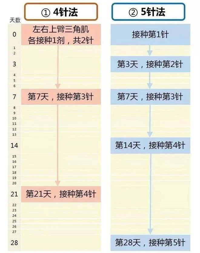 (注:基于我院当前疫苗供应情况,目前统一采用五针法程序接种。)