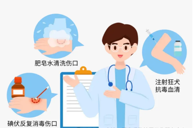 正确的方法是用肥皂水和流动的清水交替清洗,至少15分钟,并用2%-3%的碘伏或75%的酒精进行消毒。然后到医院进行处理,医生会根据伤口轻重注射狂犬疫苗和免疫球蛋白。