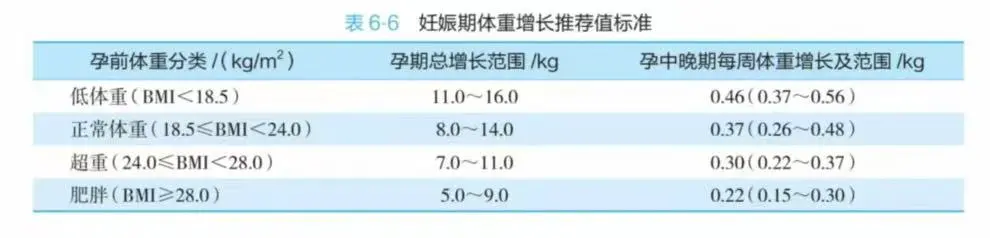 孕期体重增长标准