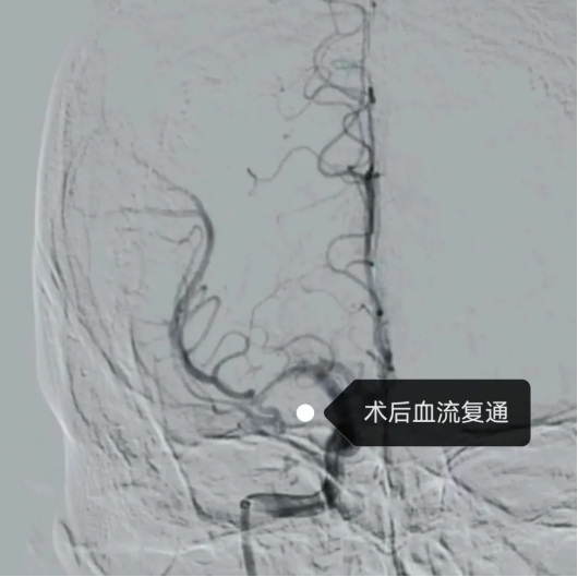 最终,在团队娴熟配合与精准操作下,手术顺利完成。术后患者肢体肌力及语言功能均恢复良好,NIHSS评分显著改善,目前已基本恢复正常生活能力,治疗效果良好。
