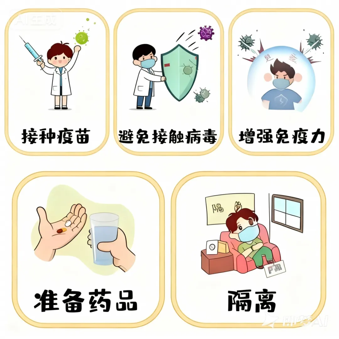 疫苗接种、药物预防、保持良好的个人卫生习惯。