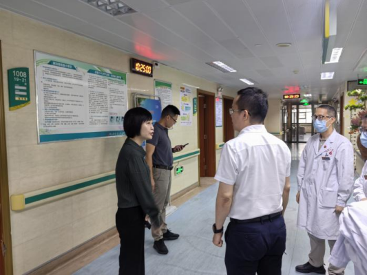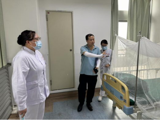 8月4日下午,市委政策研究室二级调研员曾庆文带队到东凤人民医院督导基孔肯雅热防控工作。镇卫健分局局长吴文伟、医院院长陈喜炎陪同检查。