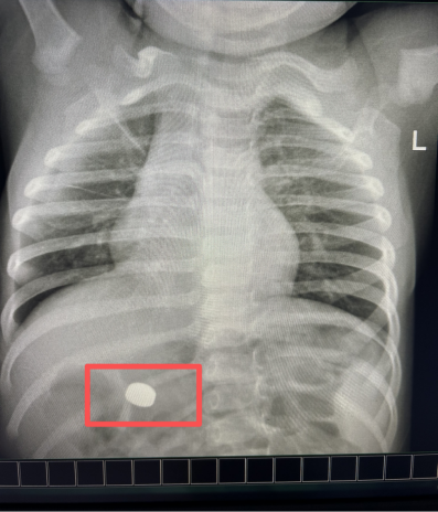强台风“桦加沙”来袭,风雨交加。一位年仅一岁9个月的幼儿因误吞纽扣电池,被家属紧急送至我院急诊。