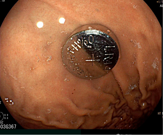 在麻醉团队的密切配合下,消化内科医师将内镜经口缓慢送入,精准定位异物后,以网篮稳妥套住电池,并平稳完整地将其取出。术后再次进镜观察,确认食管及胃黏膜情况良好,未见明显损伤、活动性出血或穿孔迹象。