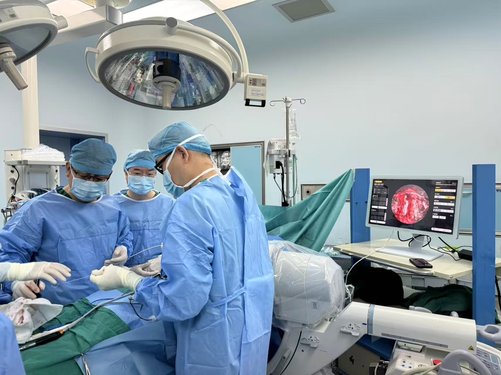 由于保守治疗效果不明显,医护团队综合评估后,决定为患者施行颈椎前路微创手术。在南医三院派驻骨科专家、东凤人民医院副院长闫慧博(挂职)的带领下,我院骨科团队共同为患者实施“