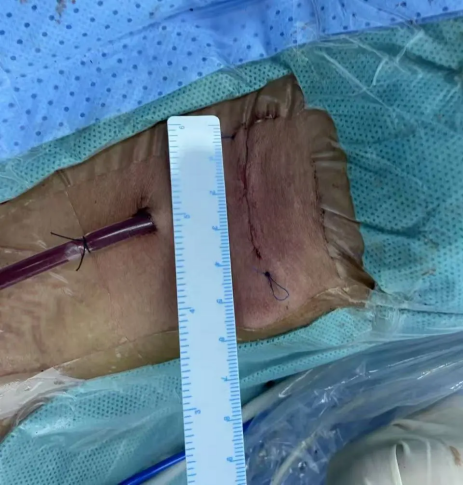 手术借助进口微创设备完成,切口小,术中出血约20ml,历时约1.5小时,患者生命体征平稳。