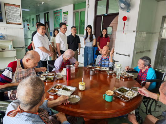 邓剑枢一行听取了中心服务保障情况工作汇报,重点检查了老人配餐服务相关工作,强调要坚决保障老人权益,严守食品安全底线,深化“医养康护食”一体化服务,提升老人就餐体验。调研组还与老人亲切交流,了解其生活状况与情感需求,叮嘱工作人员要加强人文关怀,提升服务温度。